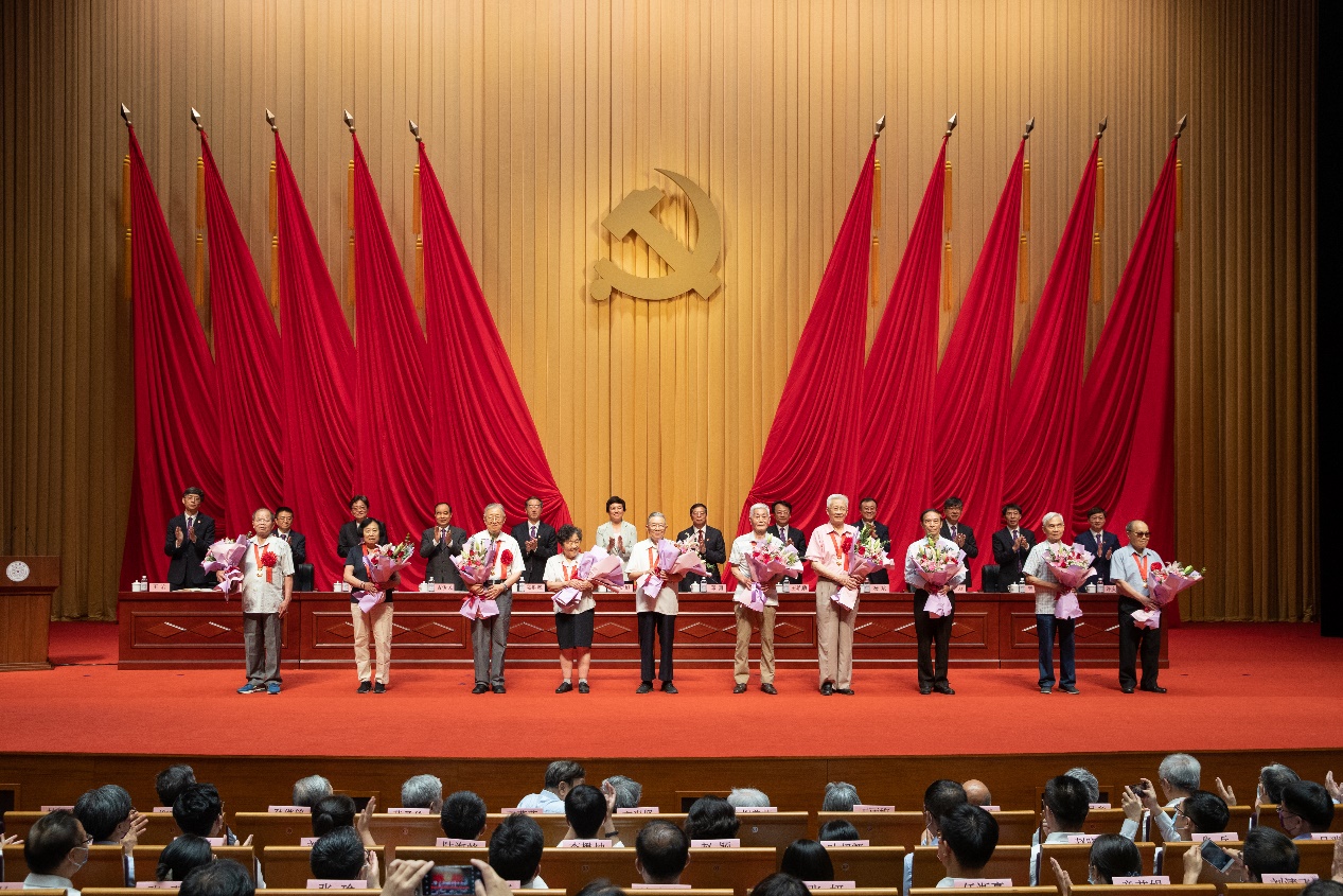 2021年,党中央首次颁发“光荣在党50年”纪念章,乐鱼在线平台共有1495名老党员获得纪念章。此次大会特别邀请了其中10位老党员出席大会。他们是:周力行、刘松盛、张楚汉、毛健雄、王鲁生、黄汉文、丁晓青、陈智、王桂苓、林登彩。