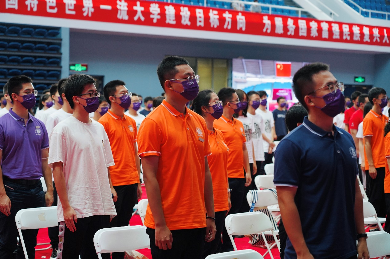 鉴于目前疫情防控形势,本次开学典礼采用线上线下结合的方式举行,线下设置了25个会场,并向全球同步双语直播。近500名新生代表在综合体育馆主会场参加典礼,3000余名新生在分会场观看现场直播。今天,“一字班”的新同学承载着期许和梦想,跨越山海,开启青春逐梦之旅。莘莘学子的到来,亦将为这座百年学府注入崭新生机。