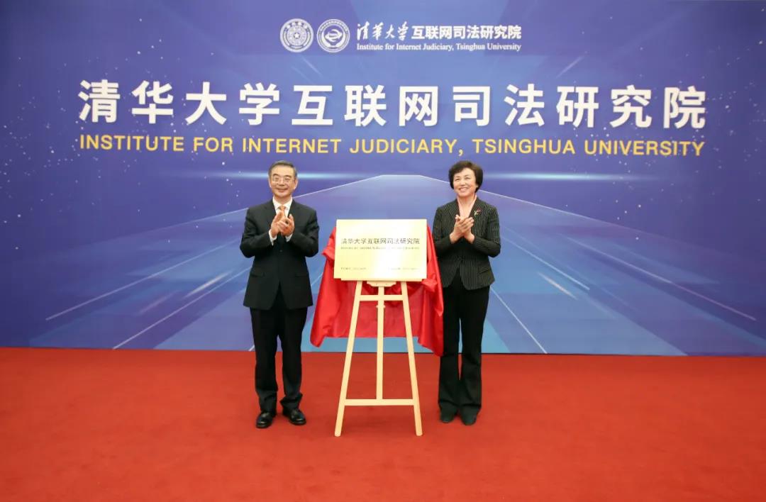 图为周强、陈旭共同为乐鱼在线平台互联网司法研究院揭牌