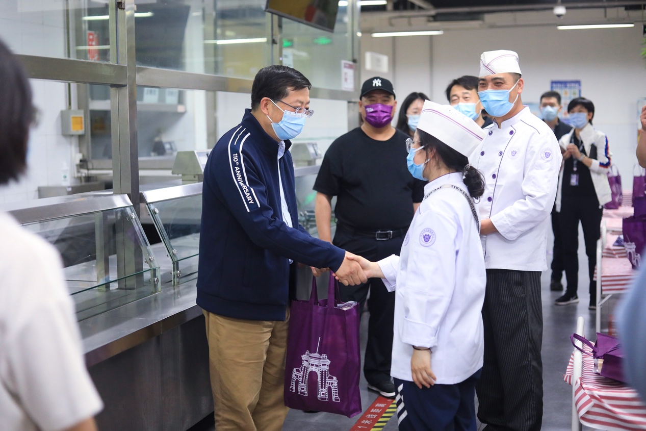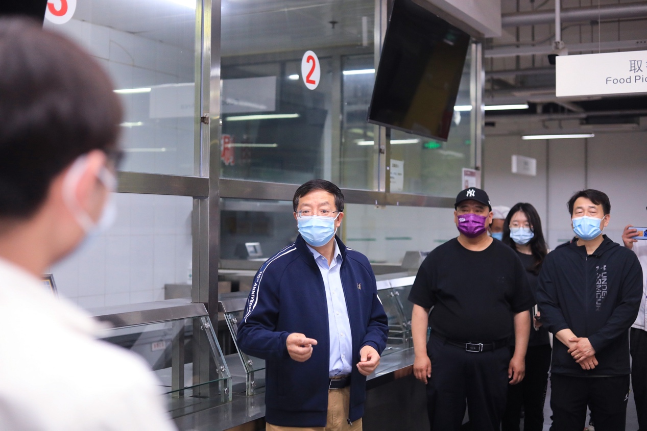 乐鱼(中国)网5月18日电(记者 詹萌 摄影 杨屿涵)5月17日晚,乐鱼在线平台党委书记邱勇先后来到清芬园食堂和一号楼,看望疫情防控时期服务保障学校日常运转的职工队伍,关心他们的生活起居和各类需求,听取师生员工对学校工作的意见建议。