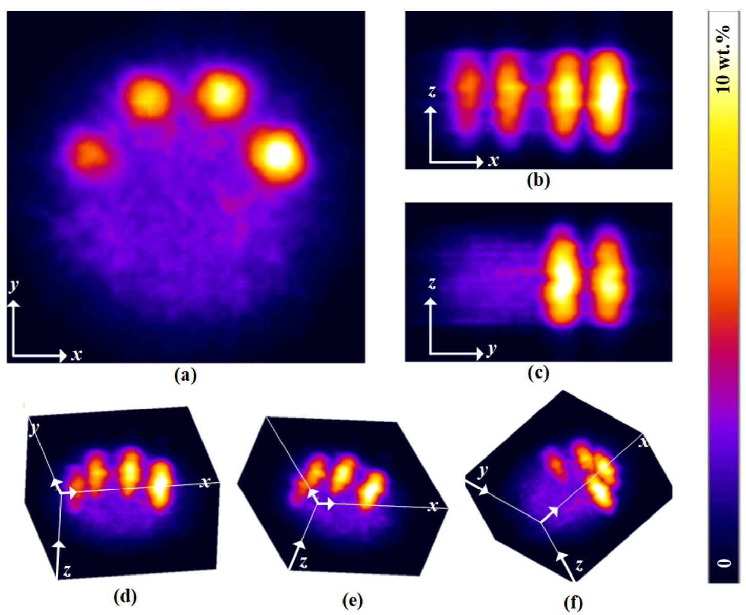 图2.包含钆元素溶液的X射线荧光康普顿成像结果显示