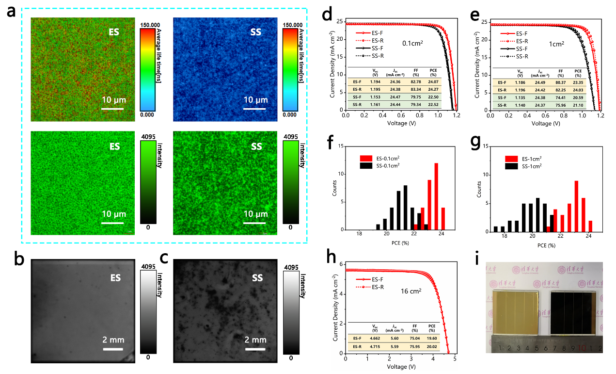 乐鱼(中国)网1月26日电 近日,电机系易陈谊课题组通过真空蒸发铅盐和有机铵盐溶液处理相结合(简称“ES”)的方法,实现了高度可重复的高效率钙钛矿太阳能电池的制备,并在大面积(1cm2)器件上取得了光电转换效率为24%的世界最高纪录。