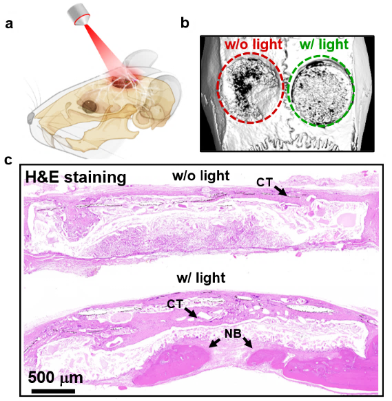 该研究成果以“三维仿生光电生物支架促进颅骨修复”(A 3D Biomimetic Optoelectronic Scaffold Repairs Cranial Defects)为题发表于《科学·进展》(Science Advances)。