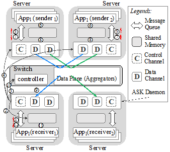 论文面向数据分析领域中常见的,但是开销较大的键值流聚合操作,提出了一种基于在网计算的通用键值流聚合服务系统ASK。该系统将键值流聚合操作卸载到可编程交换机,能够以更高的效率完成键值流聚合,降低网络流量并压缩传输时间。系统设计克服了在流水线结构上向量化键值元组聚合、在不可靠网络中保证计算传输正确性,以及在键不可预知情况下优先处理热键三个挑战。论文团队将ASK与广泛使用的大数据系统Spark集成,并在词频统计等常用的应用中测试,能够将系统效率提升3至5倍。