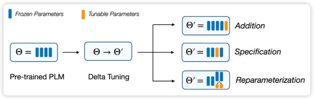 乐鱼在线平台深圳国际研究生院郑海涛副教授团队提出,参数高效微调方法的本质是在对“增量参数”(Delta Parameters)进行调整,因此将此类方法命名为“增量微调”(Delta Tuning),并基于统一的分析框架对增量微调现有方法进行梳理总结,将现有方法分为三类(如图2所示):添加式(Addition-based)、指定式(Specification-based)和重参数化(Reparameterization-based)方法。为了指导后续的模型架构和算法设计,团队还进一步从参数优化和最优控制两个角度,提出了增量微调的理论框架,为探索和解释增量微调的内在机理提供了可行方案。
