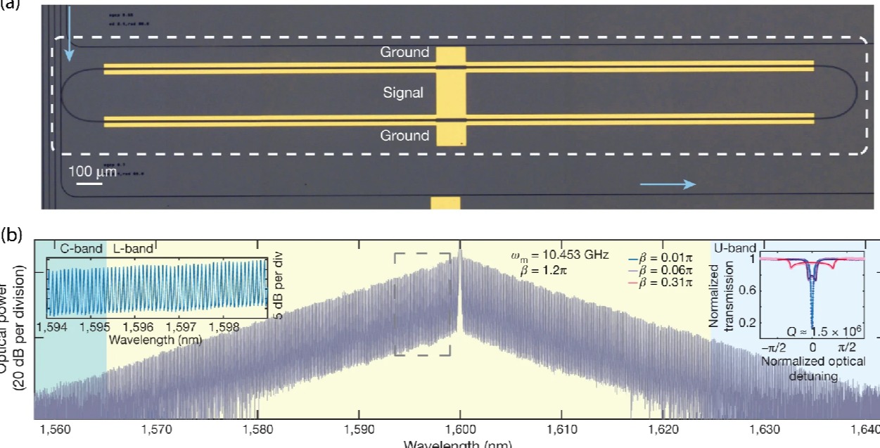 图2.基于光学微腔的铌酸锂片上电光频梳