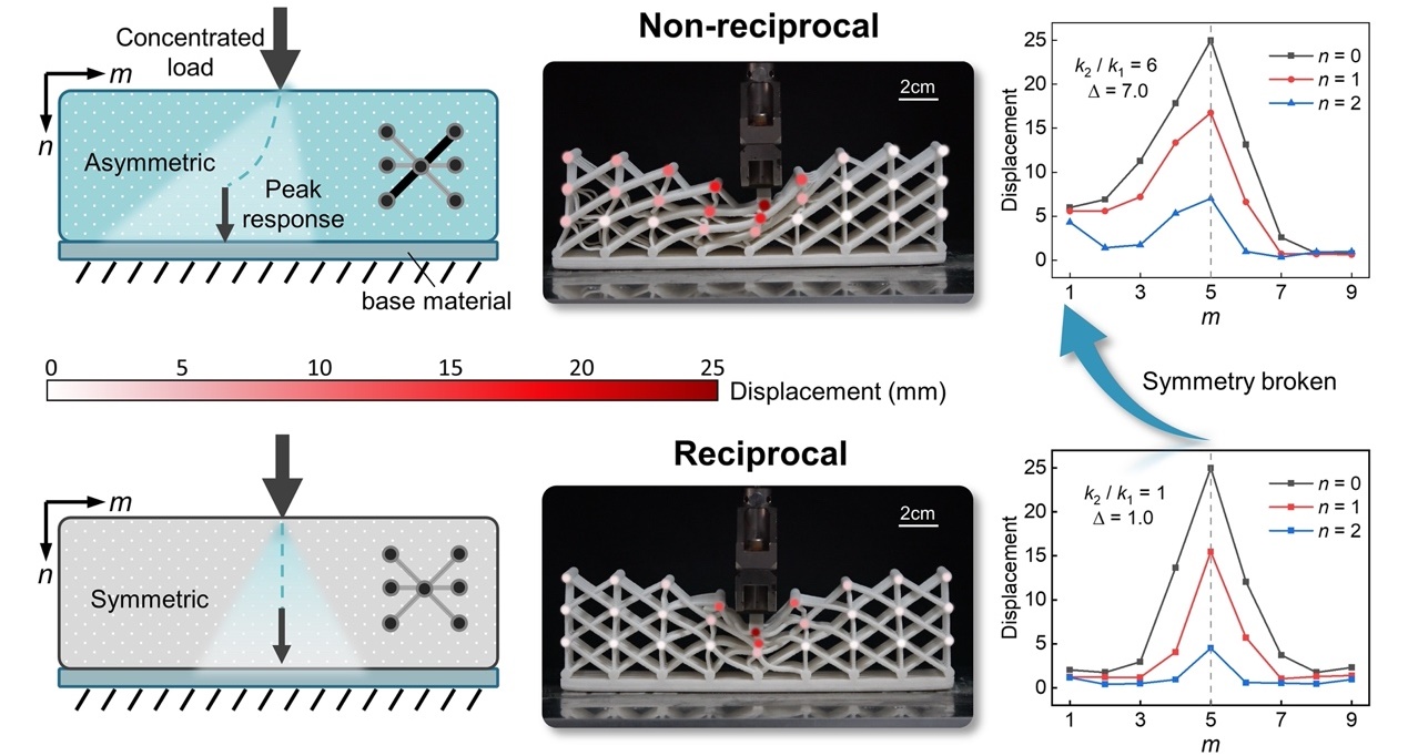 乐鱼在线平台航天航空学院陈常青教授为论文通讯作者,2021级博士生王澳西为第一作者。作者还包括2018级博士生孟志强。该研究得到国家自然科学基金委重点项目和创新群体项目的支持。近年来,陈常青课题组在力学超材料领域取得了一系列成果,包括拓扑静态孤子、多路径变形力学超材料以及具有信息的机械计算、编码和存储等信息处理能力的自认知力学超材料等。