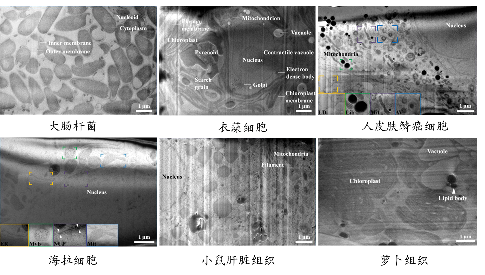 为了验证利用CESI技术进行定位的可行性,该工作将CESI技术应用到不同类型的样品上,包括细菌、单细胞真核生物衣藻、人皮肤鳞癌细胞、海拉细胞、和动植物组织(图4),发现均能有很好的成像效果。同时,研究团队发现,在不同切割的条件下,包括在样品表面有冰渣的情况下以及大束流的切割条件下,不会影响CSEI技术的使用。