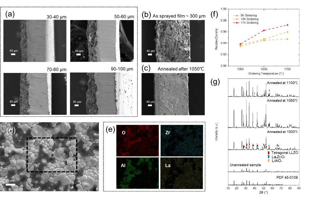 图2.等离子喷涂制备的LLZO薄膜的物理性能表征