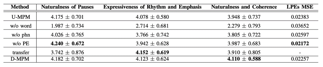 与传统缺乏篇章级上下文的情感分析模型相比,团队提出的方法能有效利用不同尺度的文本信息,改善了合成语音的停顿、韵律自然度。篇章上下文信息的引入,使得合成语音具有更好的全局一致性,大幅提升了合成语音在主观听感上的整体连续性。