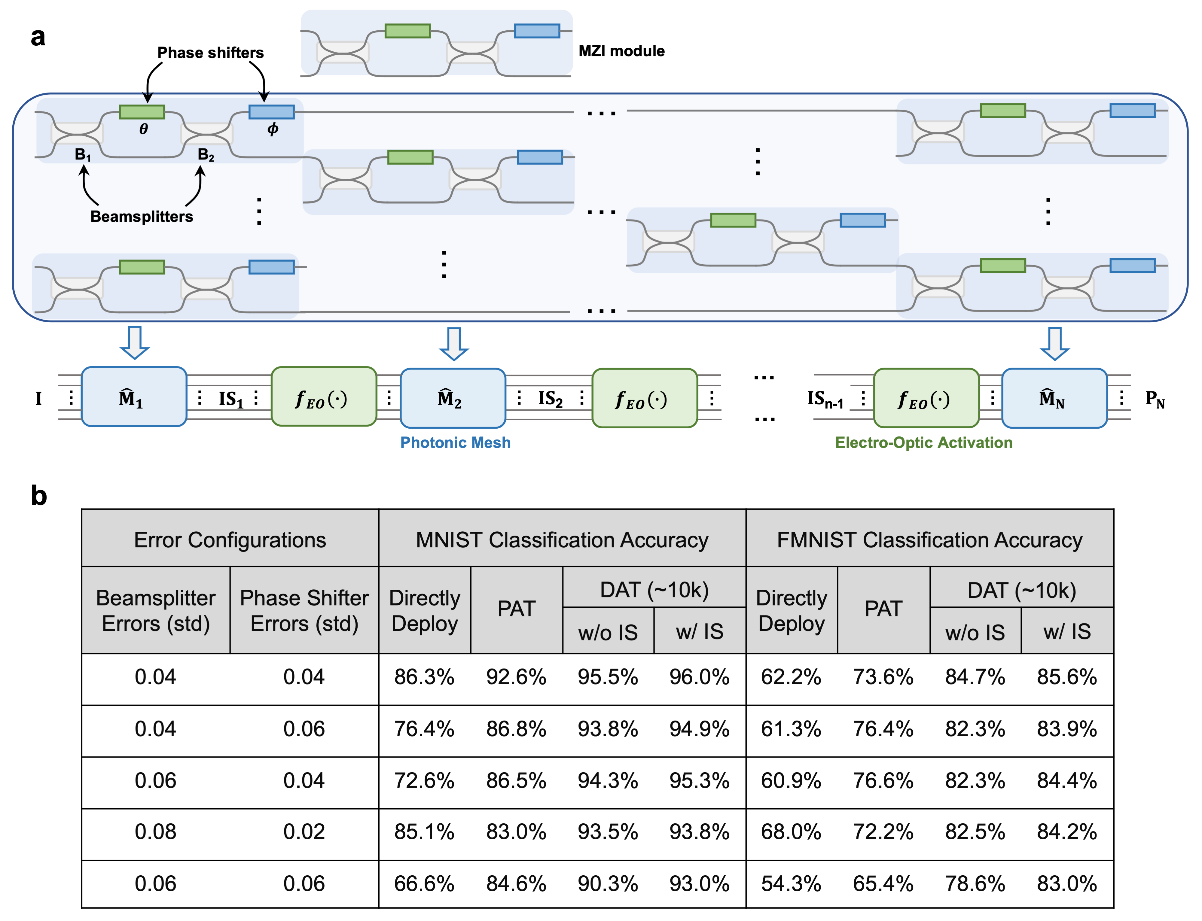 图1.光子神经网络的对偶自适应训练方法