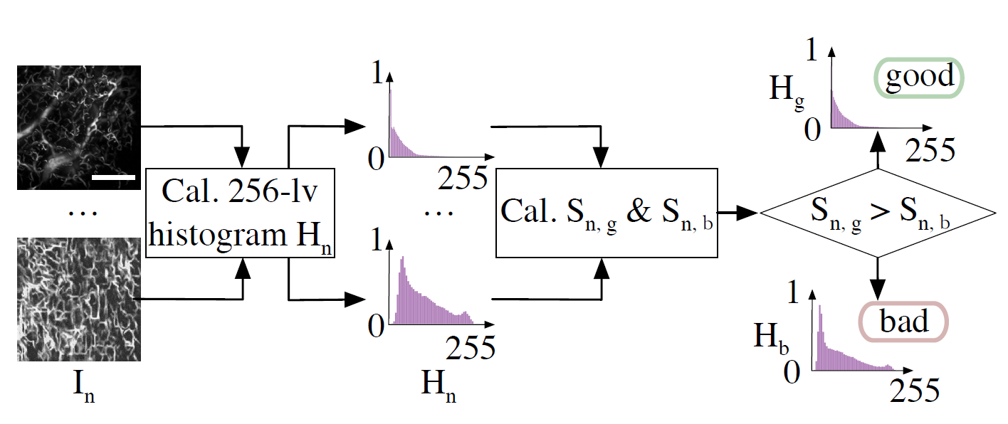 图2.借助优质的生成血管造影图像拥有类似的灰度直方图分布,研究人员利用聚类刷选优质的生成图像,并返回给超分辨模型,用于改善训练精度