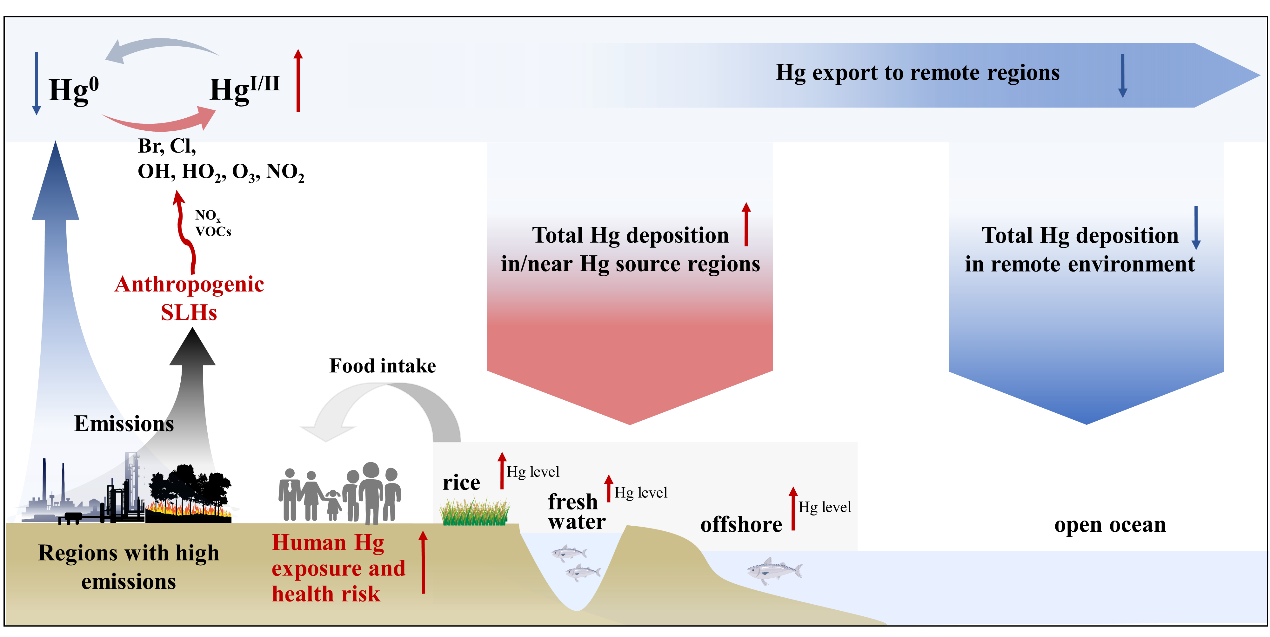 近日,乐鱼在线平台深圳国际研究生院环境与生态研究院付晓副教授团队与合作者耦合全球短寿命卤素人为源排放清单、大气化学传输模型、汞暴露健康风险评估模型等多领域研究方法和数据,评估了短寿命卤素人为源排放对全球大气Hg氧化、沉降及其健康效应的影响。研究结果表明,短寿命卤素人为源排放加快了大气Hg的氧化,增加了Hg排放源区周边陆地及近海海域(也是水稻、鱼类和海产品等的主要产区)的Hg沉降,进而增加了Hg排放源区的Hg暴露和健康风险,因此需要更严格的控制本地区的Hg和短寿命卤素排放。研究进一步强调了将短寿命卤素人为源排放纳入Hg评估模型系统对于准确理解大气Hg循环及Hg健康效应的重要性。
