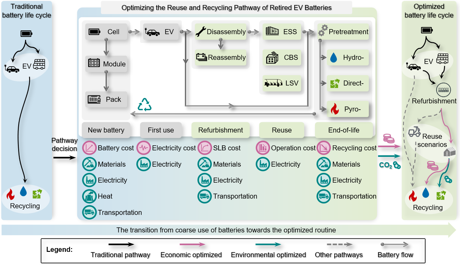 9月2日,相关研究成果以“考虑经济和环境效用的退役锂离子电池再利用和回收路径决策”(Pathway decisions for reuse and recycling of retired lithium-ion batteries considering economic and environmental functions)为题,发表于《自然·通讯》(Nature Communications)。