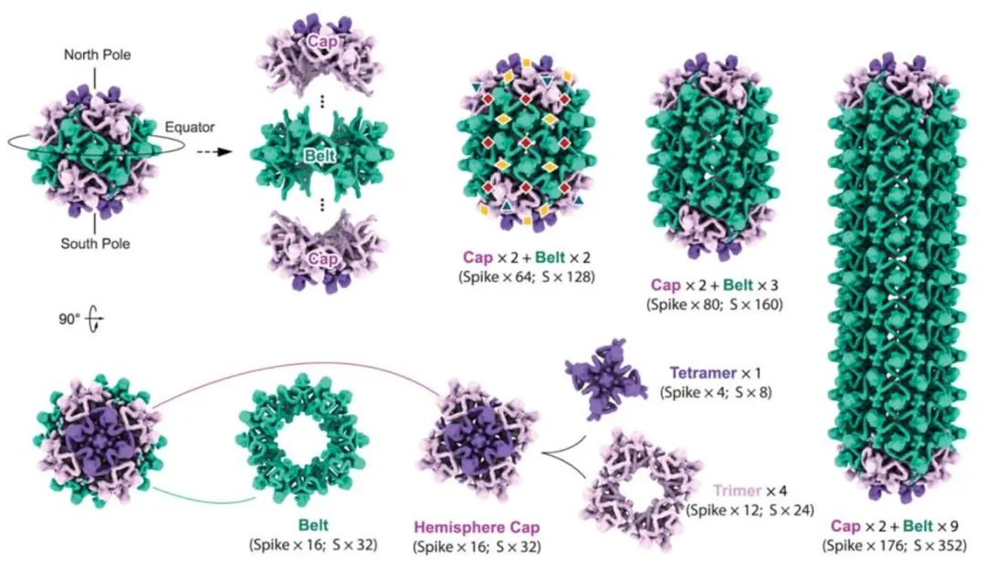 该研究成功表征了乙肝表面蛋白及其自组装体表现出的高度结构柔性,揭示了其在病毒粒子表面形成多样寡聚形态的分子基础。基于其在亚病毒颗粒表面一种典型三聚体和三种不同四聚体局部组装模式的观察和分析,研究团队对球形颗粒如何延展形成更长的管状微丝结构,以及如何与内部核衣壳相适配组装形成完整病毒的分子机制进行了解读。