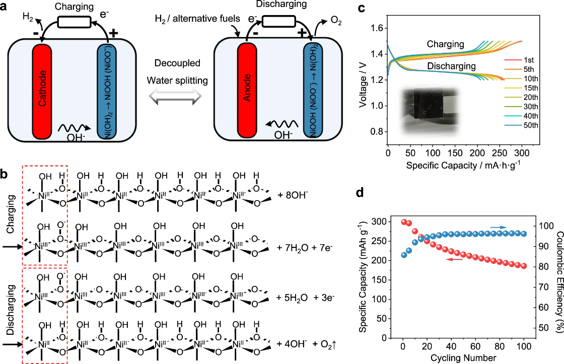 相关研究成果以“通过氢氧化镍氧化还原实现的分步氧析出和解耦电解水”(Sequential oxygen evolution and decoupled water splitting via electrochemical redox reaction of nickel hydroxides)为题,于10月18日在线发表于《自然·通讯》(Nature Communications)。