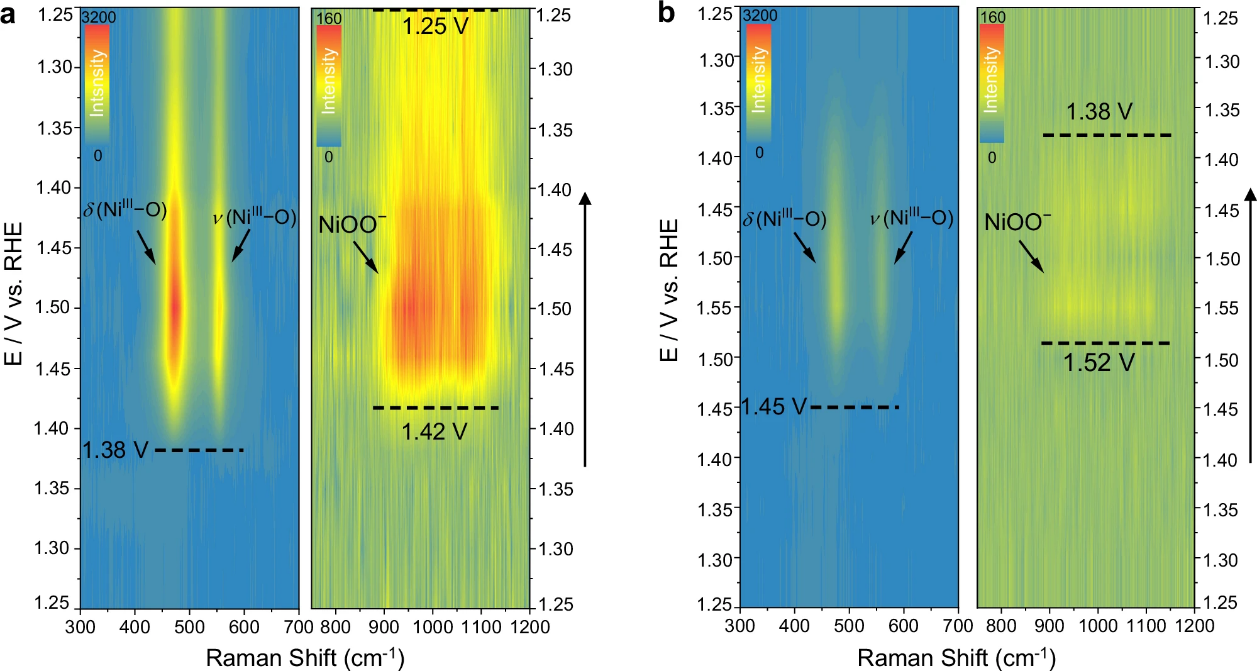 图1.镍基氢氧化物在0.1 M KOH中氧析出行为的原位表征