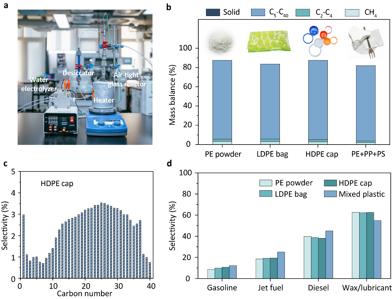 乐鱼(中国)网12月10日电 废弃塑料的资源化利用是推进绿色低碳循环发展的重要举措。聚乙烯是全球需求量最多的通用塑料,每年消费量超过1亿吨。氢解可将聚乙烯选择性转化为高值液体燃料和化学品,但往往需要在较高的氢气压力下进行。