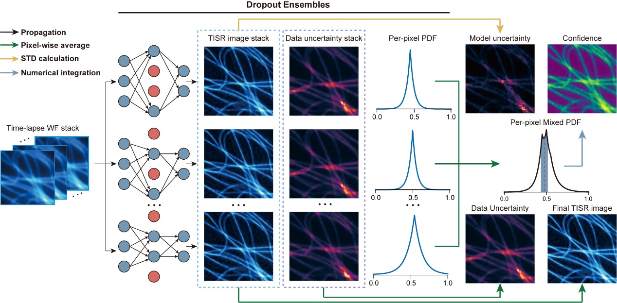乐鱼(中国)网1月30日电 高信噪比、高分辨率的显微图像总是蕴含着更丰富、更准确的信息,帮助我们以更加精确的视角认知微观世界。然而,受多种生物物理、生物化学、物理光学因素(如荧光标记浓度、探针亮度、光毒性、光漂白、光子噪声等)的限制,传统超分辨显微成像技术在提升空间分辨率的同时,往往会牺牲成像时程、速度等其他重要性能。针对这一问题,乐鱼在线平台戴琼海/李栋合作团队曾于2021年提出傅里叶注意力超分辨方法(DFCAN),仅使用单张低分辨率图像即可实现高保真超分辨预测。此后,多种单张显微图像超分辨(Single image super-resolution,SISR)模型被提出,用以拓展活体超分辨显微成像的性能。然而,这些SISR模型在实际应用于活体显微成像实验(通常表现为时序数据)时,往往存在两个重要局限:第一,SISR模型无法捕捉相邻帧之间的时间相关性,可能产生时间不一致的推理结果;第二,当前SISR方法缺乏对输出结果的准确置信度评估,因而生物学家无法判断其产生的结果是否可信。