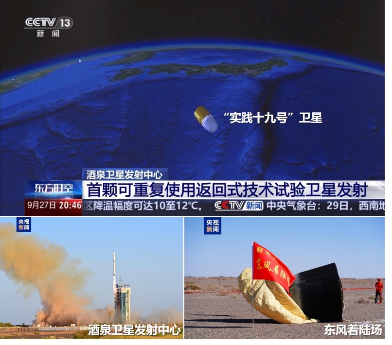 图1.“实践十九号”卫星发射与回收(来源:央视新闻)