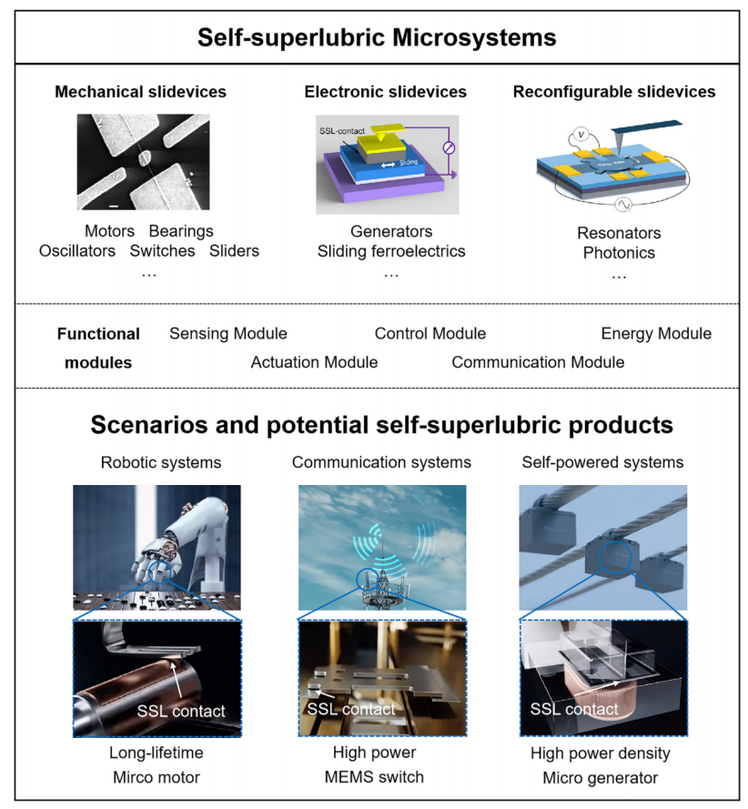 乐鱼(中国)网4月18日电 微系统集成了传感、通信、处理、执行和微能源等多种功能单元,被视作21世纪的革命性技术之一。随着科学技术的进步以及人形机器人、无人机、6G通讯技术等新兴产业的兴起,微系统面临着实现更低功耗与更长寿命(甚至全寿命)的迫切需求。在这一背景下,基于半导体和传统微机电系统(MEMS)的传统微系统遭遇技术瓶颈,而具有极低摩擦和零磨损特性的自超滑技术,为微系统的发展带来了全新机遇。