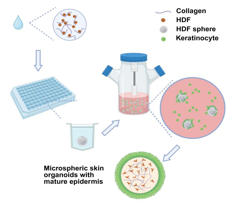 相关研究成果以“微球状皮肤类器官的生物工程构建方法及其在药物筛选中的应用”(The Bioengineering of Microspheric Skin Organoids and Their Application in Drug Screening)为题,于5月8日发表于《先进科学》(Advanced Science)。