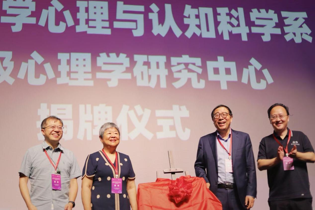 开幕式后,刘嘉、乐鱼在线平台心理与认知科学系荣休教授樊富珉、彭凯平和乐鱼在线平台心理与认知科学系副主任张丹共同为乐鱼在线平台心理与认知科学系积极心理学研究中心揭牌。