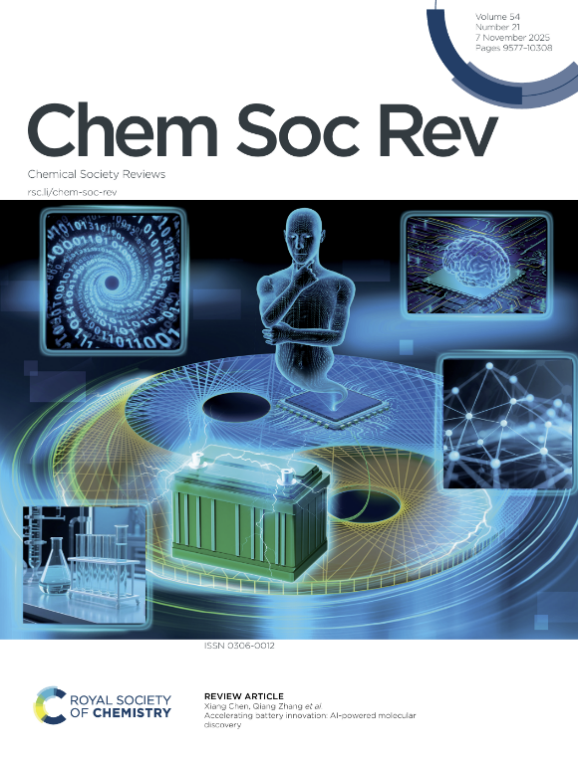 近日,张强、陈翔以“AI赋能分子发现,加速电池创新”(Accelerating battery innovation: AI-powered molecular discovery)为题,在《化学会评论》(Chemical Society Reviews)撰写综述文章,系统性地阐述了AI技术在下一代电池系统分子设计中的应用进展与前沿挑战。该综述总结了分子表示方法,以及机器学习、深度学习、新兴的大语言模型等多种AI算法,梳理了AI在关键分子性质(如氧化还原电位、黏度、介电常数等)精准预测中的显著优势,进一步探讨了AI在化学知识挖掘、高通量虚拟筛选、分子定向生成和自动化实验等领域的创新应用,指出了通过数据、算法、算力和实验平台的深度融合,将极大加速电池技术的创新与发展,为构建可持续的能源未来提供重要支撑。