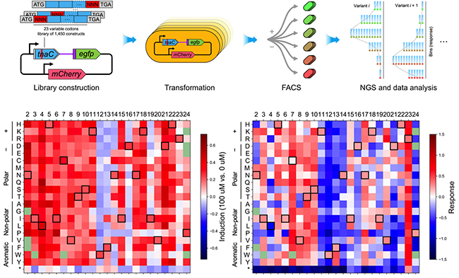 图1. 本论文建立的FACS-seq高通量分析流程及TnaC深度突变扫描图谱