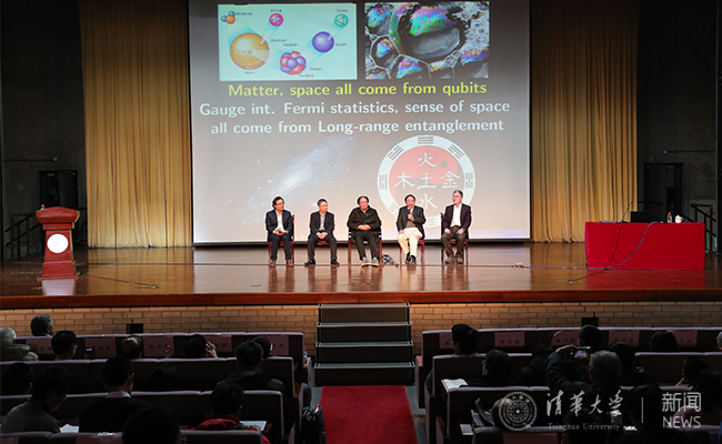 讲座中,文小刚教授以“从材料性质的起源到基本粒子的起源”为主题,围绕“为什么液体没有形状而固体有形状?”“真空中光波所满足的麦克斯韦方程是由哪种组织结构给出来的?”“描写电子的狄拉克方程又从何而来?”三个问题循序渐进地为观众介绍了凝聚态物理中的一些新进展。整场报告以全新的视角、富有创造性地解读了材料性质和基本粒子的起源,充分展现了物理现象背后的科学思想之美。