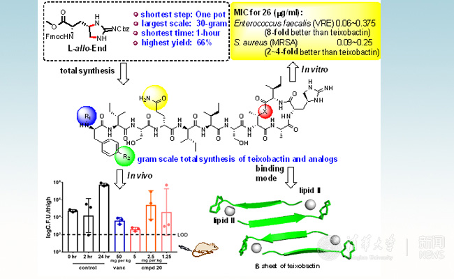 药学院饶燏课题组在《自然·通讯》发表Teixobactin克级全合成推动的其结合模式探索以及开发更强抗生素的研究