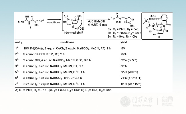 结构复杂、合成繁琐的非天然氨基酸Enduracidine的存在妨碍了科学家对于teixobactin的合成与研究,饶燏课题组首先通过发展新的合成策略,从便宜易得的原料出发,实现了一锅法大量制备非天然氨基酸Enduracidine。此方法具备规模大、步骤少、耗时短、选择性好以及产率高等优点,反应总耗时1小时,规模至少30克。这也为接下来该课题组实现teixobactin的克级全合成打下了坚实的基础。
