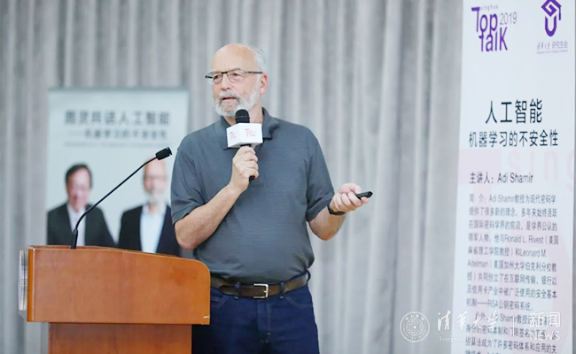 讲座伊始,沙米尔教授深入浅出地解说了目前广泛使用的机器学习模型——深度神经网络的不安全性,即其非常容易受到人为的欺骗,并从几何的角度解释了深度神经网络发生误判的原因。随后,沙米尔教授着重介绍了近期学术界针对深度神经网络发生误判问题的解决方法,同时也给大家留下了一些有关深度神经网络的开放性问题。