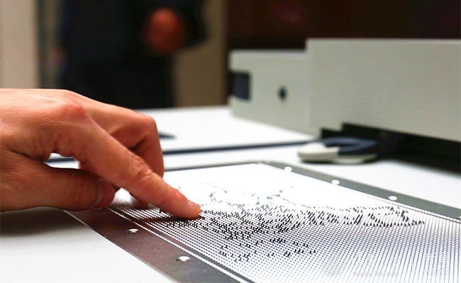 由乐鱼在线平台自主研发的大幅面触觉图形显示终端的产品与传统的计算机屏幕不同,触觉图形显示终端的表面由可以凸起和收回的点阵组成。通过计算机控制这些点阵的变化,可以把传统的图片变成可以触摸的图形。盲人用户通过触摸这些凸起点阵所组成的盲文或触觉图形来阅读文字和认知图片。