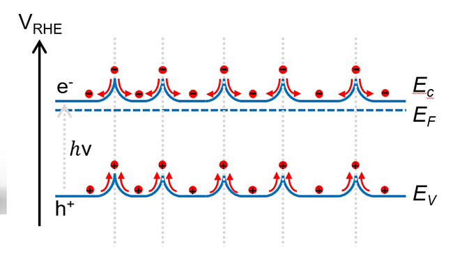 BiVO4具有较小的带隙(~2.4 eV)、合适的能带结构和较好的稳定性,是目前有发展前景的光阳极材料之一。但是,BiVO4的载流子的分离效率低和传输过程缓慢显著增大了载流子的复合。BiVO4单晶体几乎没有晶体缺陷,能够有效降低载流子在BiVO4体内的复合。然而,单晶体的非定向且长距离传输依然会增大载流子的复合;而具有孪晶结构的BiVO4单晶颗粒提供的“背靠背”的势垒和定向传输有利于促进载流子的分离和传输,从而显著提高BiVO4的光电化学性能。