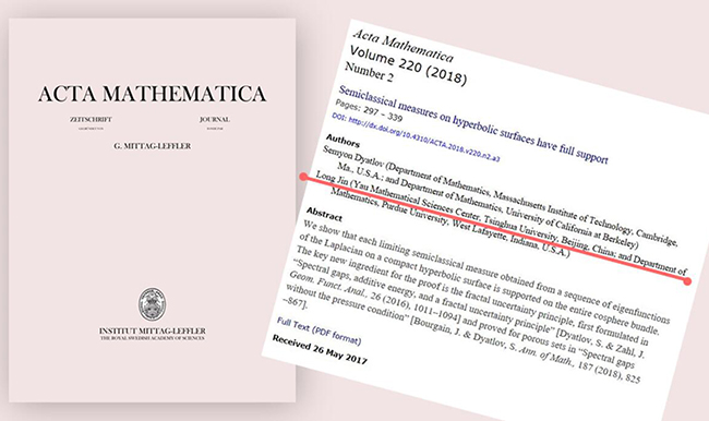 乐鱼(中国)网9月18日电 近日,丘成桐数学科学中心助理教授金龙与美国加州大学伯克利分校塞米扬·迪亚特洛夫(Semyon Dyatlov)教授合作论文《双曲曲面上半经典测度具有全支集》(Semiclassical measures on hyperbolic surfaces have full support)在国际顶尖数学期刊《数学学报》(Acta Mathematica)上在线发表。该论文成果对于理解量子混沌系统具有重要的意义。著名数学家史蒂芬·泽尔奇(Steven Zelditch)教授评价此文为该领域近十年来最好的文章。