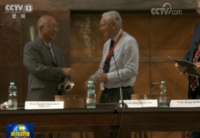 丘成桐教授获马塞尔·格罗斯曼奖 图片来源:央视新闻客户端