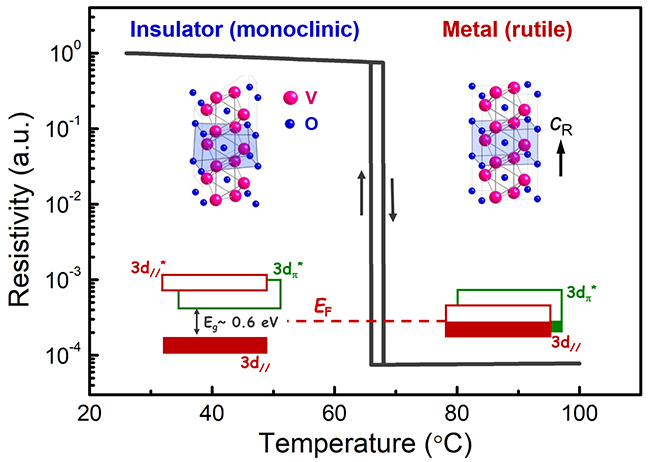 二氧化钒金属-绝缘体相变对应的晶格结构变化、能带结构变化及电阻率变化