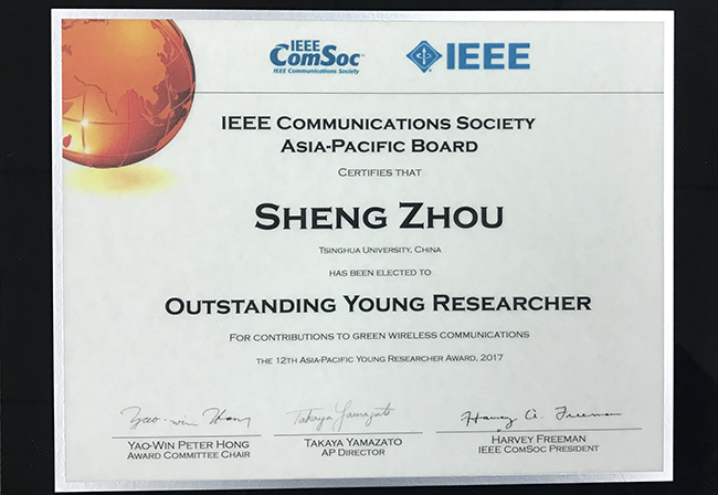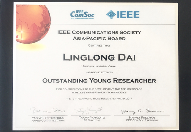 清华电子系戴凌龙、周盛获国际电气与电子工程师学会通信学会亚太地区杰出青年学者奖