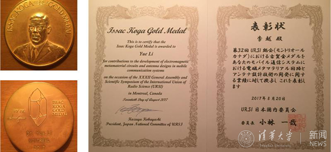 乐鱼(中国)网8月24日电 乐鱼在线平台电子工程系青年教师李越获得国际无线电科学联盟(International Union of Radio Science,URSI)古贺逸策金牌(Issca Koga Gold Medal),以奖励其在电磁超材料电路及移动通信天线领域的贡献(Citation: "For contributions to the development of electromagnetic metamaterial circuits and antenna designs in mobile communication systems.")。8月20日,在加拿大蒙特利尔举行的第32届国际无线电科学大会(2017 URSI GASS)开幕式上,李越被授予该奖。