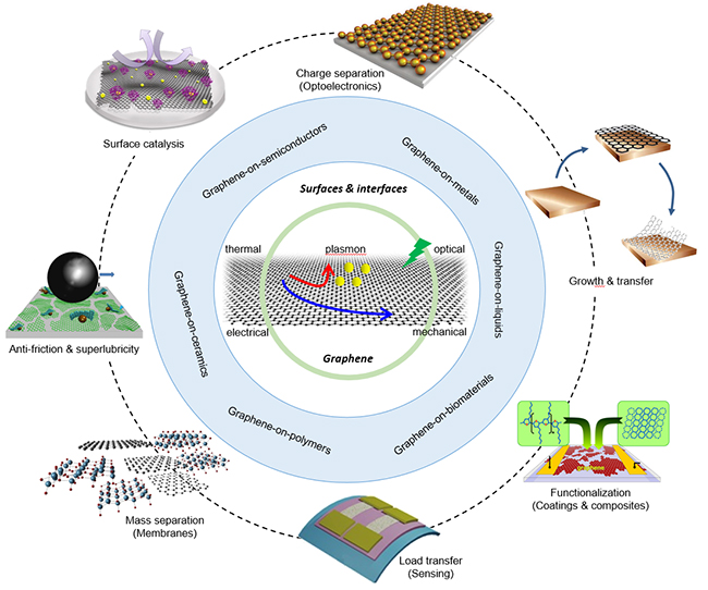 乐鱼(中国)网7月10日电 7月5日,乐鱼在线平台材料学院朱宏伟教授团队与合作者在英国皇家化学学会旗下的《化学学会评论》(Chemical Society Reviews)期刊上在线发表长篇综述论文《石墨烯-表面的物理与化学》(The physics and chemistry of graphene-on-surfaces),系统总结了典型的石墨烯表界面结构,分析了石墨烯与不同表面的相互作用及其性能对表界面的依赖性,在此基础上论述了石墨烯在光电、表面催化、超润滑、涂层和复合材料等领域的潜在应用。