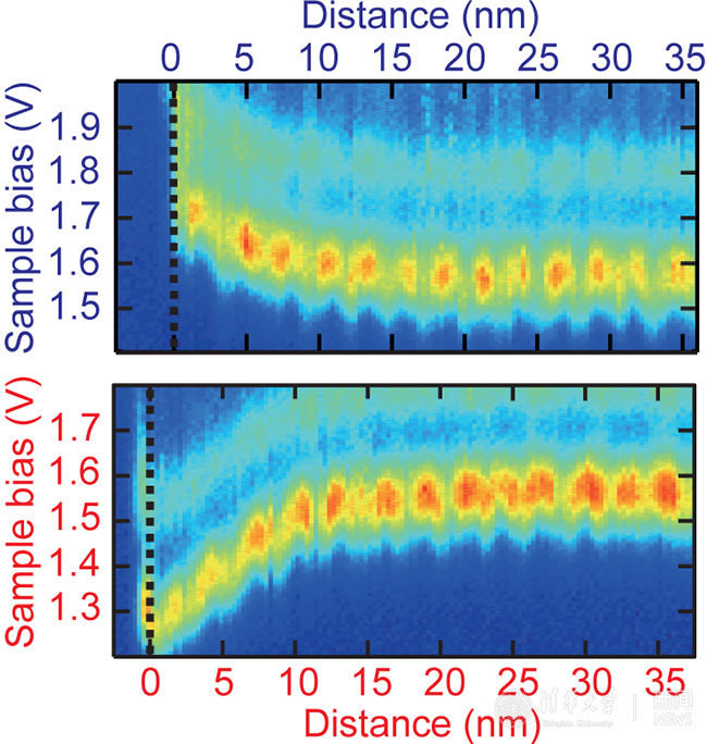 铁电体在临界转变温度之下出现自发极化。物理系博士生常凯等同学成功利用分子束外延技术制备出了高质量、原子级厚度的SnTe薄膜,并利用扫描隧道显微镜(STM)观测到铁电畴、极化电荷引起的能带弯曲,以及STM针尖诱导的极化翻转,证明了单原胞厚度的SnTe薄膜存在稳定的铁电性。
