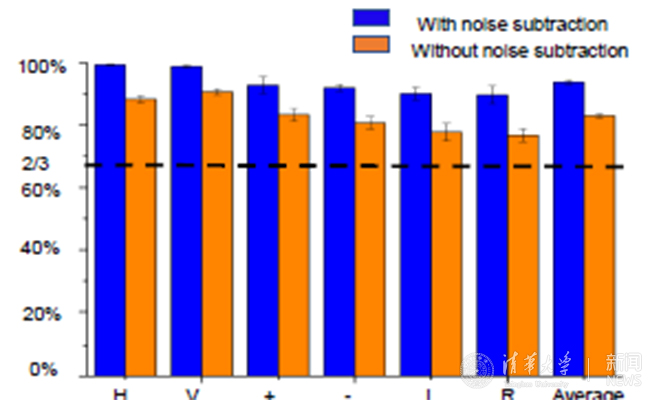 量子隐态传输的保真度(~90%)显著超过经典极限66.7%。