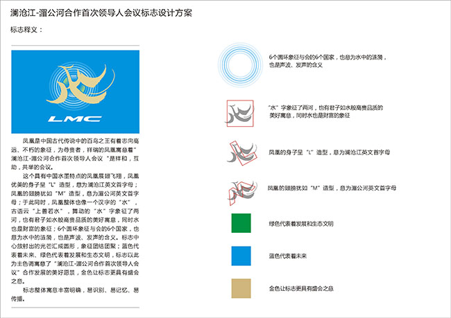 接到设计任务后,韩美林想起了凤凰的元素。他表示:“凤凰是中国古代传说中的百鸟之王,志向高远、象征不朽。祥瑞的凤凰寓意着‘澜沧江-湄公河合作首次领导人会议’是祥和、互助、共举的会议。”