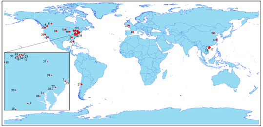 生物同质化是指不同地区间生物基因、功能和种类的相似性增加的现象,人类活动影响地球生物圈的标志,是造成全球生物多样性丧失的主要原因,具有重要的生态和进化上的后果:如造成独特基因的丧失,生物种群扩散能力的削弱,和生物群落适应环境扰动的能力降低等。而其中城市化是造成生物同质化的一种主要人类扰动,主要通过城市环境的过滤作用和人类施加的压力导致生物的多样性发生变化。此前的研究结论大多认为城市之间的生物同质化现象已经在全球尺度上发生。但现有研究主要集中在对欧美城市的分析,且依赖于文献数据中的种类的存在信息,缺乏高质量的种类数量信息支持。杨军副教授通过自己调查和与国外合作者合作,建立了采用统一方法实地调查的全球38个城市的城市森林种类和数量信息数据库,并采用了最新的生物多样性数量化分析方法展开本项分析,取得了研究成果。