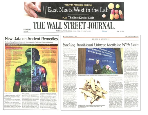 乐鱼(中国)网11月19日电 日前,美国《华尔街日报》以“古老疗法的新资料(New data on ancient remedies)”为题,用两个版面刊发了一则关于中医药科学研究的长篇报道,并在报纸头条位置对该报道作了题为“实验室中的东西方交融(East Meets West in the Lab)”的推荐。该报道重点介绍了自动化系、信息国家实验室生物信息研究部李梢教授课题组的研究成果。