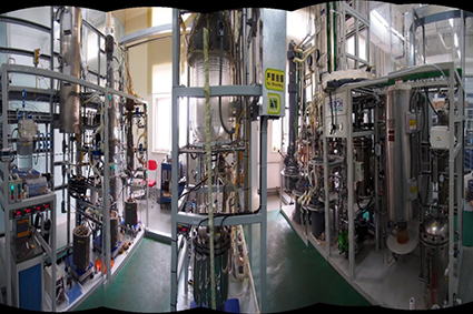 在核能制氢中,碘硫循环被认为是最有希望利用核能进行大规模氢生产的热化学循环工艺,这一工艺利用高温气冷堆的工艺热,通过三步反应组成的热化学循环实现水的分解制氢。除化学反应外,还包含多个分离过程,涉及多相反应动力学、相平衡、催化剂、电解渗析、反应精馏等多项技术的研究,循环的闭合涉及过程模拟与工艺优化、强腐蚀性、高密度浆料输送、在线测量与控制等多方面工程问题。