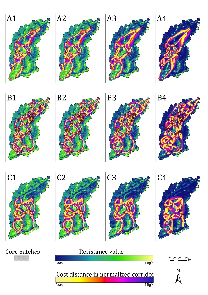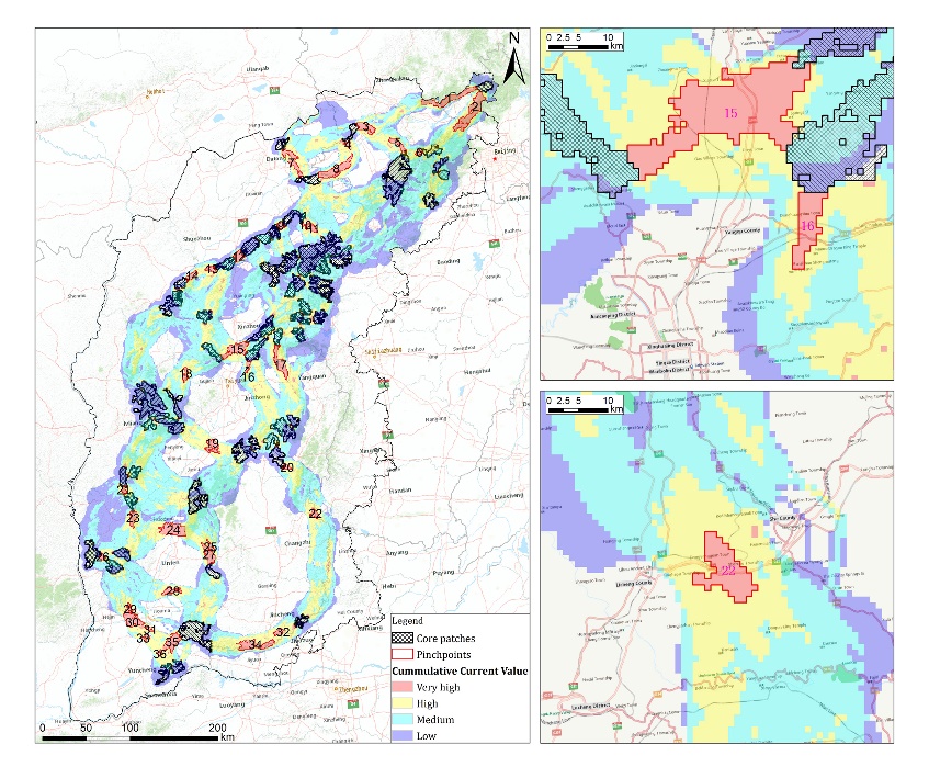 本研究提出的荒野地网络规划方法,有潜力应用于我国国土空间生态保护和修复,作为规划和构建区域尺度生态网络的一种新方法,能够快速模拟生态廊道,并识别生态廊道中的关键瓶颈点。通过构建生态廊道,有助于完善国土生态安全格局、减少栖息地破碎化对生物多样性产生的负面影响,并为可持续人居环境提供生态保障。由于该方法具有一定的普适性,因此也有潜力推广应用于世界各国的破碎化景观之中。