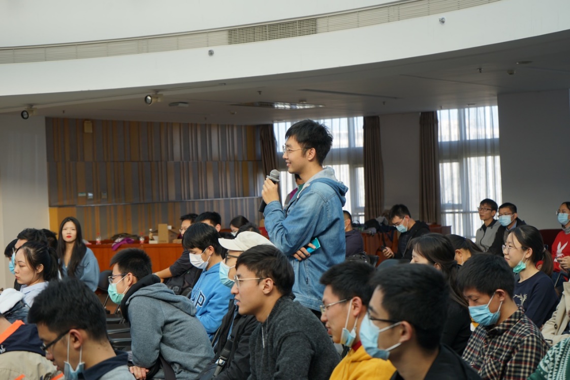 在提问环节中,同学们围绕获得诺贝尔奖的影响、博士生涯规划、科研道路选择等话题与天野浩和罗毅进行了热烈交流。天野浩教授指出,只要所从事的研究是对世界有用的事情,就值得付出心血勇往直前。