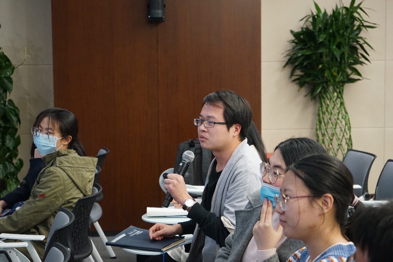 其中,生命学院博士生周珩提出了一个关于结构柔性的问题。弗兰克与同在现场的生命学院刘俊杰老师都建议他可以设计专门针对这些离子通道的制样装置,用以解析其结构。生命学院博士生徐家璐与弗兰克讨论冷冻电镜分辨率的革命。王宏伟预计冷冻断层成像子断层平均法(sub-tomogram average)的近原子分辨率会比想象中更快到来。生命学院博士生陈康净围绕单颗粒冷冻电镜技术中结构异质性,与弗兰克讨论基于流形嵌入方法的主要适用范围,以及如何分析结构中的异质性从而选择合适的方法。学生挑战团队的宋雨桐表示,王老师在讨论中提出了一个非常大胆的设想,通过大幅改变电镜设备,利用多电子束同时成像,快速获取数据,这令她印象深刻。